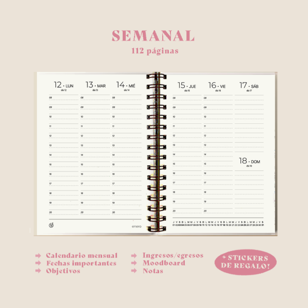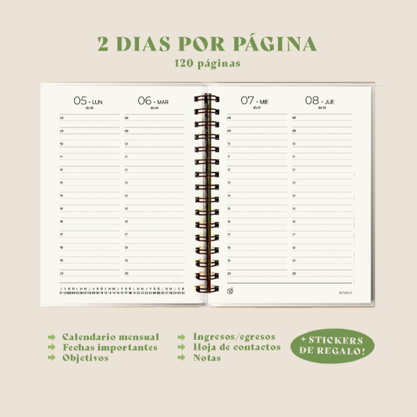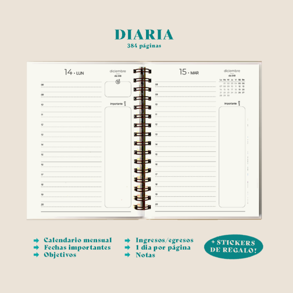 •Interior a elección - semanal, 2 días por página, diaria-